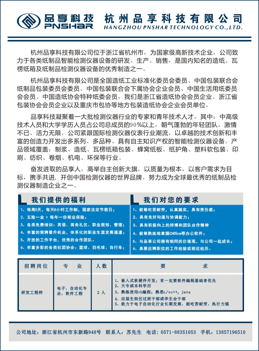 研發(fā)工程師招聘 - 杭州品享科技有限公司