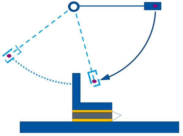 擺錘置于初始位置,并鎖住。將試樣放在試樣臺上,按“測試”鍵,先鎖緊試樣再釋放擺錘破壞試樣,測試結(jié)束,屏幕顯示測試結(jié)果。