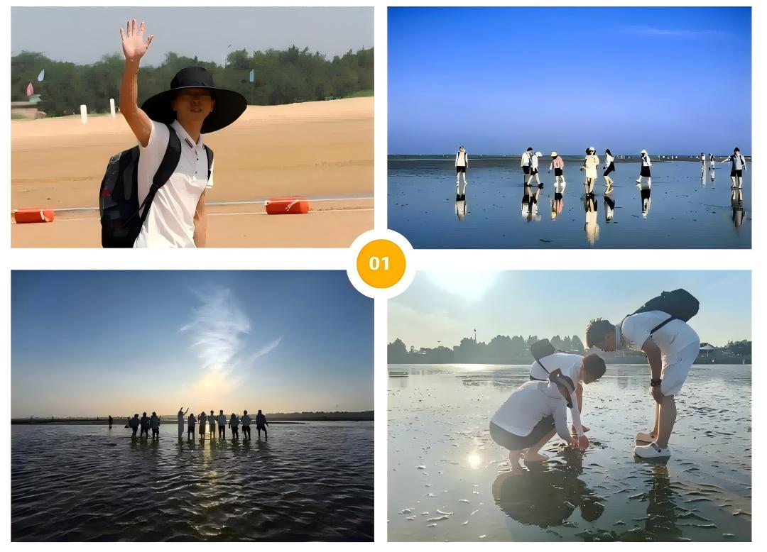 趕?;顒訉⒙眯蟹諊葡蚋叱?。大家拎著小桶,踩在退潮后的沙灘上,時(shí)不時(shí)有花蛤從腳下噴水,沙堆里還藏著螃蟹,這種開 “大海盲盒” 的快樂讓大家興奮不已。有人俯身撿拾被潮水沖上岸的貝殼,將海的密語藏進(jìn)口袋;有人迎著海風(fēng)張開雙臂,任咸濕的風(fēng)灌滿衣襟;還有人并肩坐在礁石上,看云影在海面上作畫,讓思緒隨浪濤漂向遠(yuǎn)方。暮色漸濃時(shí),橙紅色晚霞潑灑天際,燒烤架上騰起的煙火氣與碰杯聲交織,把一年的并肩奮斗釀成微醺的詩行。