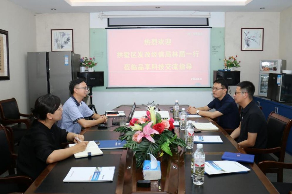 8月8日,杭州市拱墅區(qū)發(fā)改經(jīng)信局黨組副書記、副局長林廣瑤,工信科科長魯劍等領(lǐng)導(dǎo)一行蒞臨品享科技走訪調(diào)研,長慶街道經(jīng)濟(jì)科項(xiàng)坤科長陪同考察,品享科技董事長蘇紅波及企管部部長陳林英等共同接待。