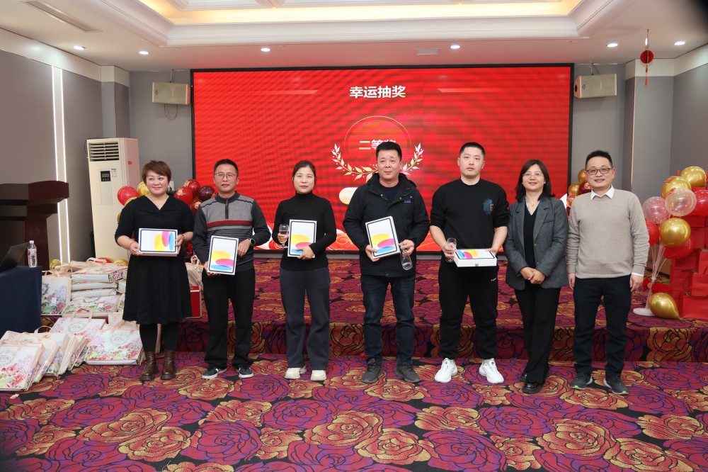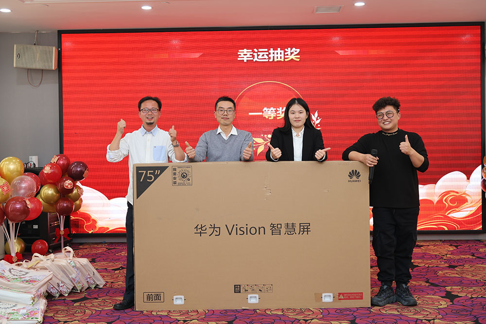 除了表彰先進,年會現(xiàn)場還設置了激動人心的幸運抽獎環(huán)節(jié)。隨著抽獎環(huán)節(jié)的進行,現(xiàn)場氣氛被一次次推向高潮。幸運兒們臉上洋溢著幸福的笑容,他們不僅收獲了豐厚的獎品,更感受到了公司對員工的關愛與祝福。