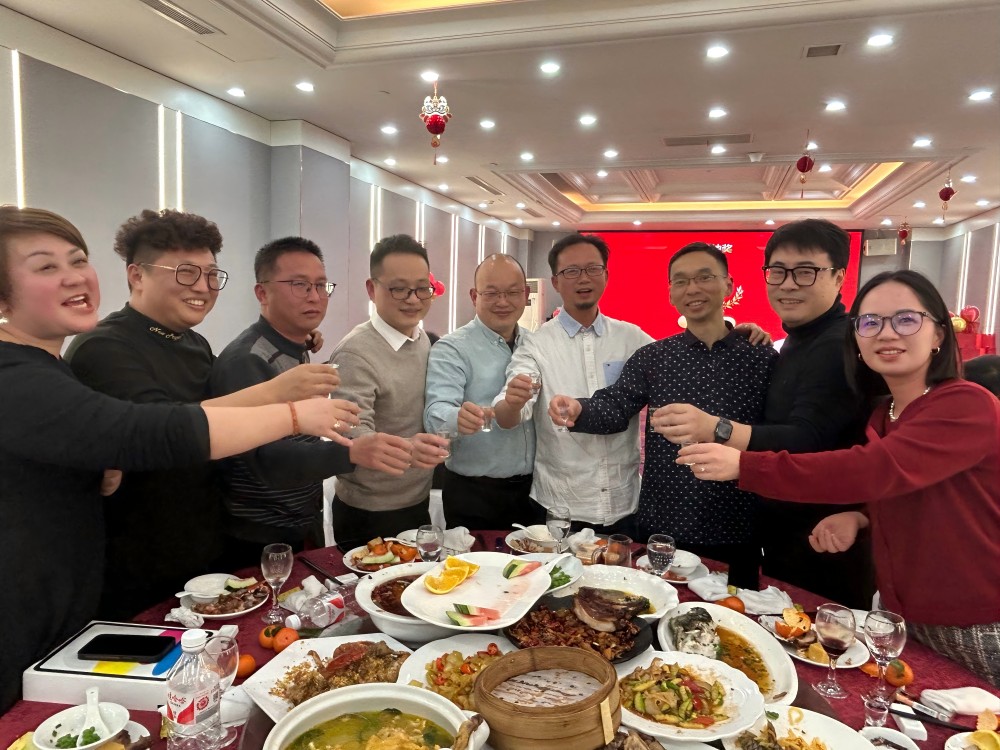 晚宴時分,大家紛紛舉杯同慶,共同暢談美好的未來。小伙伴們圍坐一堂,一邊分享著美味佳著-邊交流著工作中的心得與體會。在這個過程中,彼此之間的了解和友誼得到了進一步的增進。整個年會現(xiàn)場洋溢著歡樂、祥和的氛圍,仿佛一個大家庭般溫暖而和諧。